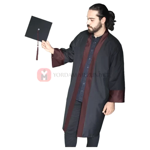 - Bedeni siyah alpaka kumaş, kollar ve ön bantları kahverengi saten, klasik model cübbe